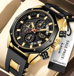 LIGE 9836 Golden Men’s Watches Luxury Fashion Quartz for Watch