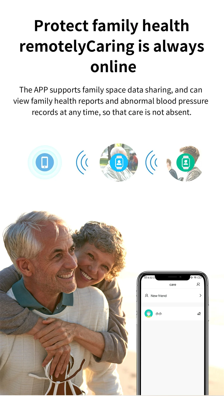Special Features:Optimized three high, independent accurate blood oxygen, body temperature, respiration rate, blood pressure, heart rate, blood oxygen, remote relatives and friends care