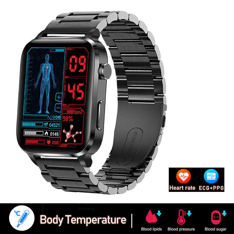 Dual probe laser health therapy, temperature monitoring and warning, independent precise blood oxygen, respiratory rate, heart rate monitoring, blood pressure monitoring, remote care for friends and relatives, 1.70 inch full touch screen, metal alloy enclosure exercise mode, multi-exercise mode, exercise recording.Sleep monitoring, sitting alerts, call and message alerts.
