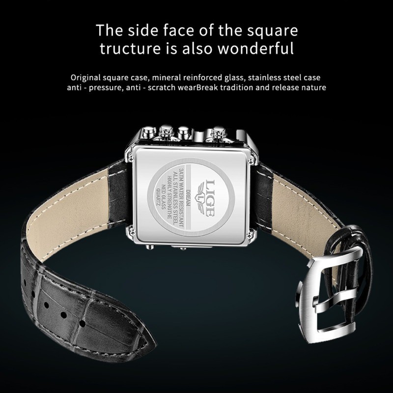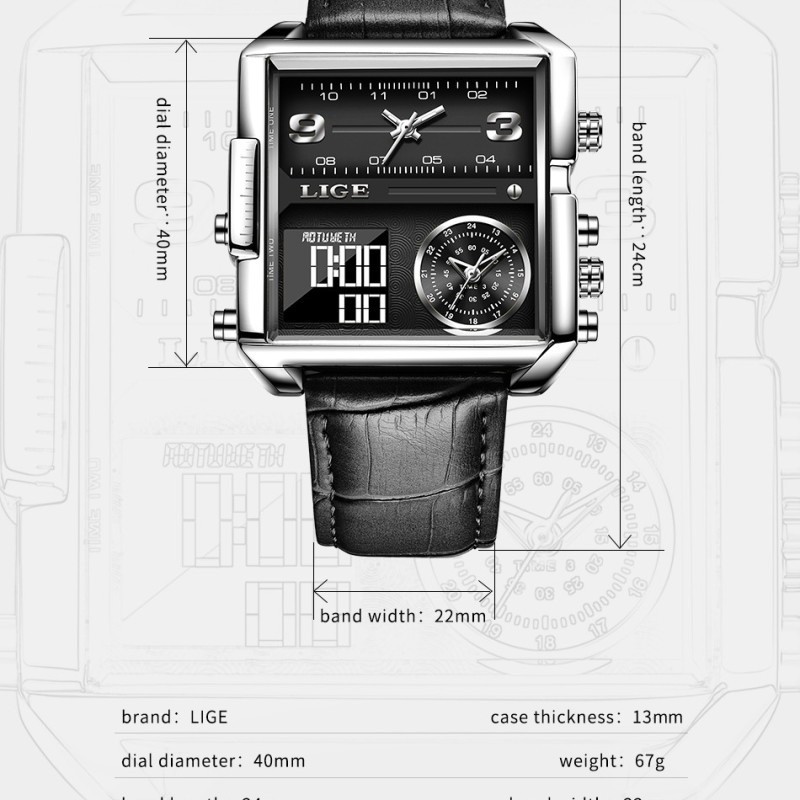 POEDAGAR LED Alarm Dual Time Display Digital Quartz Men Watch