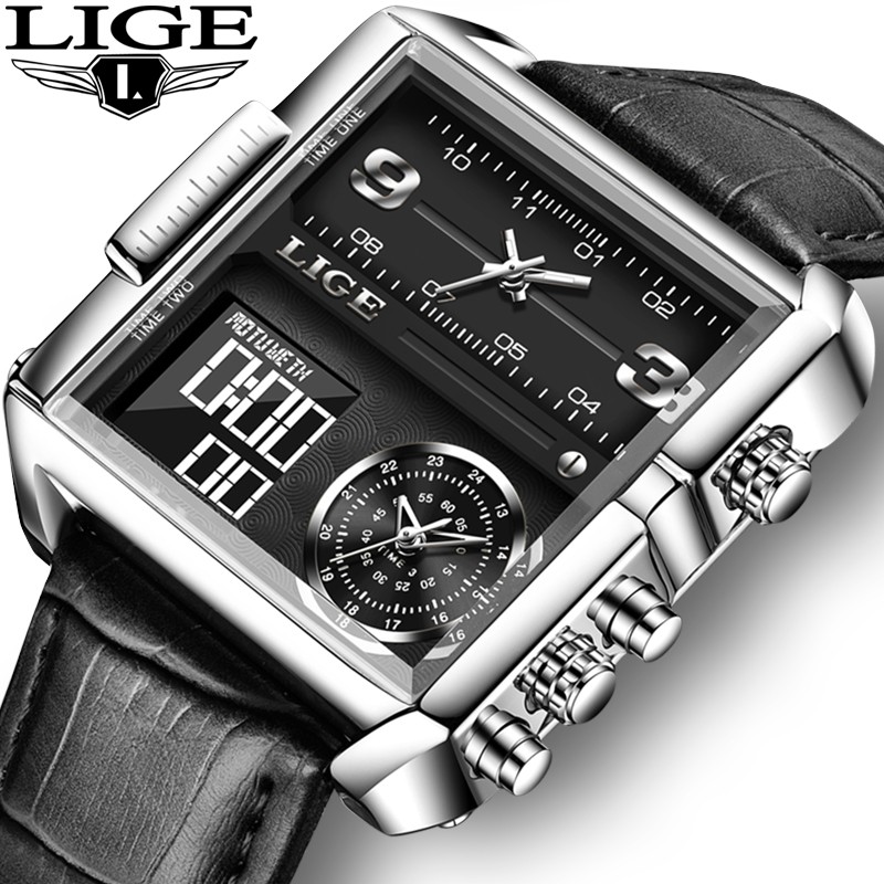 POEDAGAR LED Alarm Dual Time Display Digital Quartz Men Watch