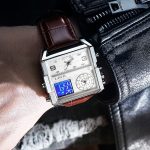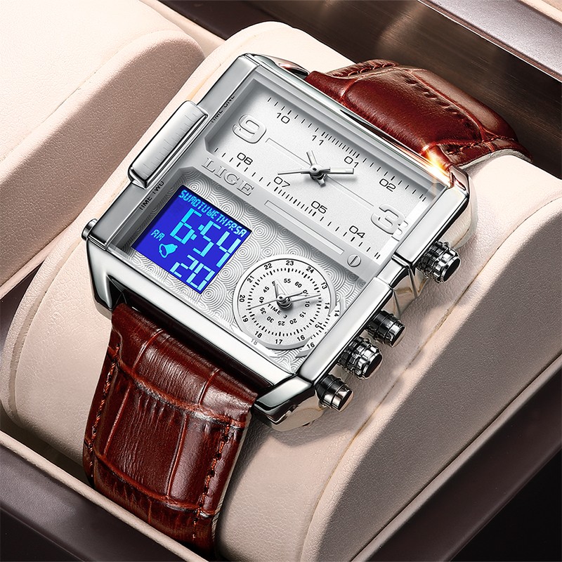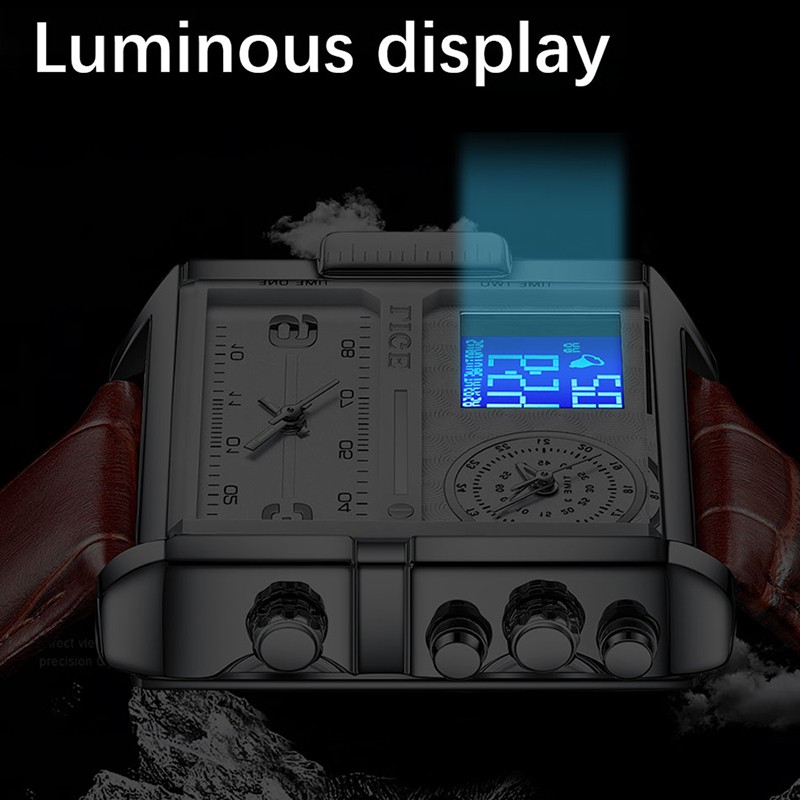 POEDAGAR LED Alarm Dual Time Display Digital Quartz Men Watch