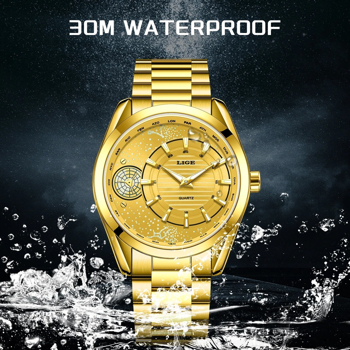 LIGE Top Brand Luxury Waterproof Ultra Thin Date Clock Male Steel Strap Casual Quartz Watch Men Sports Wrist Watch