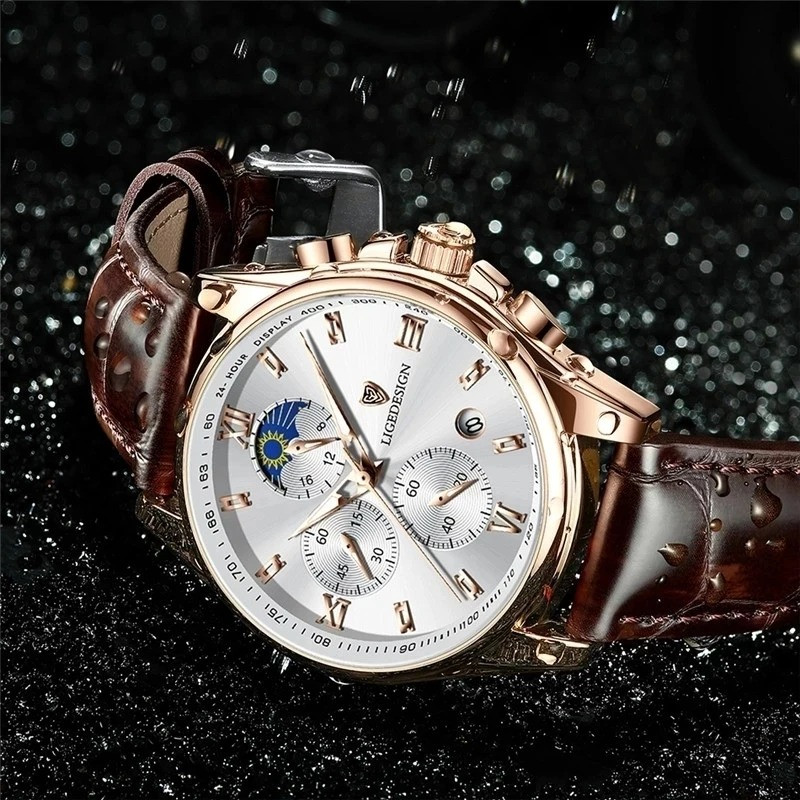 LIGE 9836 Golden Men’s Watches Luxury Fashion Quartz for Watch
