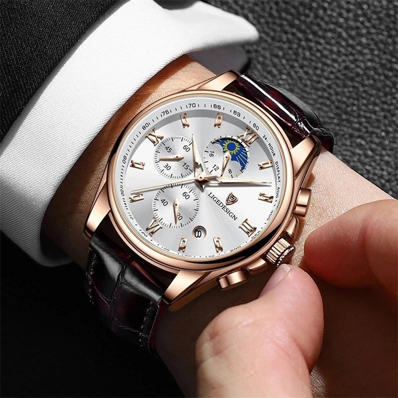 LIGE 89161 Sample Quartz Movement Rotating Watch Gambling Disk Mens Wrist watch