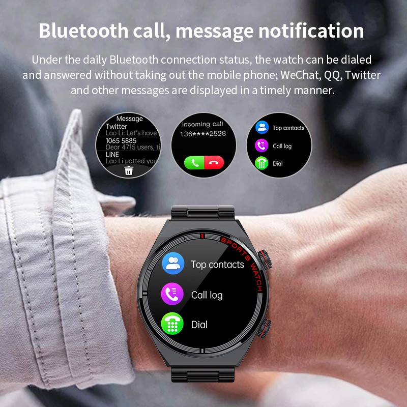 Basic functions: date/day of the week display, weather push, physiological cycle (APP-gender setting is female only), countdown timer, card management, remote photo taking, sedentary reminder, pedometer, distance, calories, heart rate/blood pressure/blood oxygen/stress/cardiac/body temperature/sleep monitoring, Bluetooth music control, incoming call reminder, SMS reminder, social app message reminder, alarm reminder, exercise mode, exercise mode, exercise mode. Raise hand to light up screen, find phone, stopwatch, reject call, do not disturb mode, multi-dial switch, custom dial, brightness adjustment, firmware upgrade, etc.