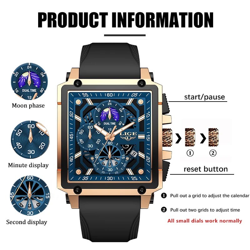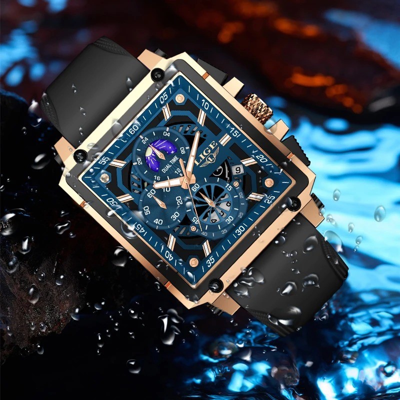 Be the first to review “LIGE Mens Silicone Strap Waterproof Watches Top Brand Luxury Hollow Square Sport Watch” Cancel reply