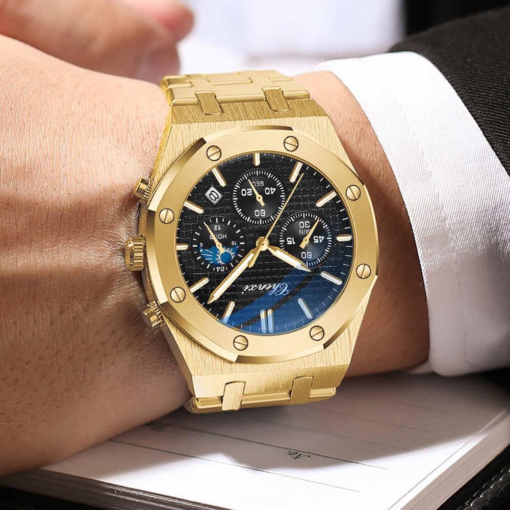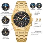 Be the first to review “Luxury Gold Watches for Men Royal Stainless Steel Waterproof Chronograph Golden Business Casual Male Quartz Wristwatch” Cancel reply