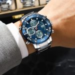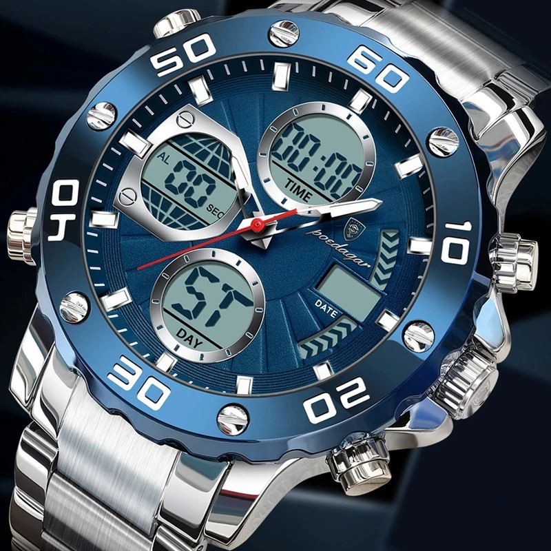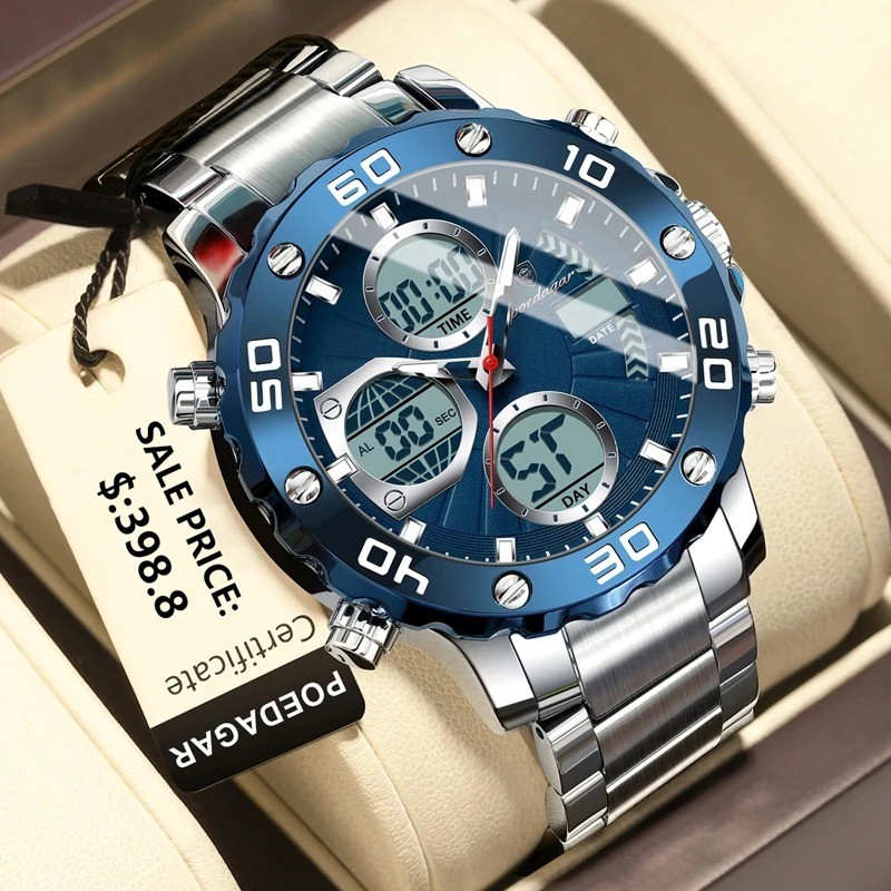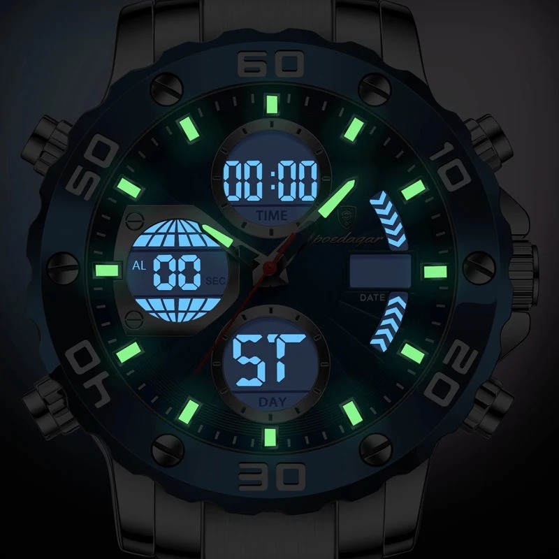 POEDAGAR LED Alarm Dual Time Display Digital Quartz Men Watch
